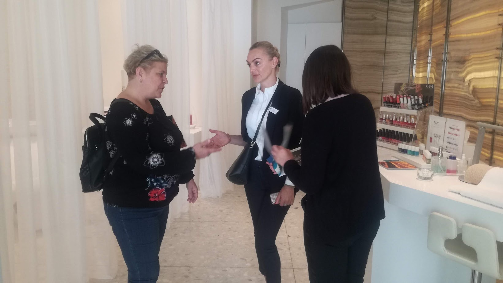 Na recepciji nas je dočekala gđa. Danijela Bracanović (voditeljica spa operacija) i povela nas u obilazak. Obišli smo sve wellness centre i to redom u hotelu Punata, Bellevue, Alhambra i Aurora. Gđa. Danijela nas je tijekom obilaska upoznala s kompletnom strukturom njihovih wellnessa i dala nam odlične smjernice i upute za izradu budućih programa. Razgovarali smo i o problemu manjka stručnog kadra s kojim se svake godine susreću uoči sezone. Drugi dan održao se je službeni sastanak s upravom. Na sastanku su bili prisutni: direktorica kadrovske službe – Silvija Baričević, wellness i spa direktorica – gđa. Ljiljana Matić, direktor nabave – gosp. Robert Pleteš i pomoćnica uprave Antonia Blaić. Sastanak je otvorila ravnateljica Ustanove Galbanum Lidija Delić i predstavila projekt Nova stručnost – Nova budućnost (Kodni broj: UP.02.2.2.03.0038). Zatim nas je wellness i spa direktorica Ljiljana Matić upoznala s novostima koji su uvedeni u njihove wellnesse i dala odlične smjernice i savjete za izradu programa.